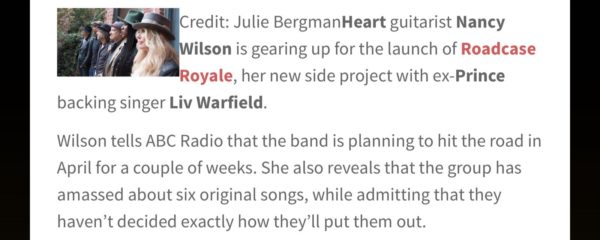 From the same ABC interview: Meanwhile, Nancy wants to assure Heart fans that the band is “not over.” “A break is a healthy thing for somebody who lives in each other’s pockets for 40 years sometimes,” Wilson maintains. “I think we’re not done making a lot of noise quite yet.”